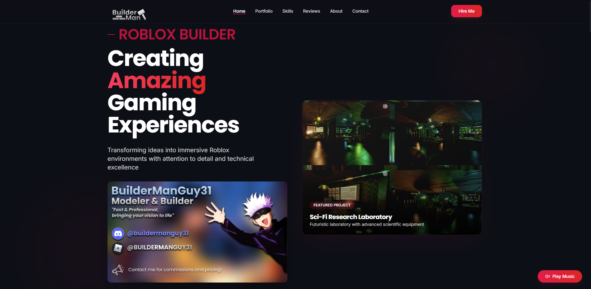 Professional Roblox Builder portfolio showcasing 3D modeling work and immersive gaming experiences