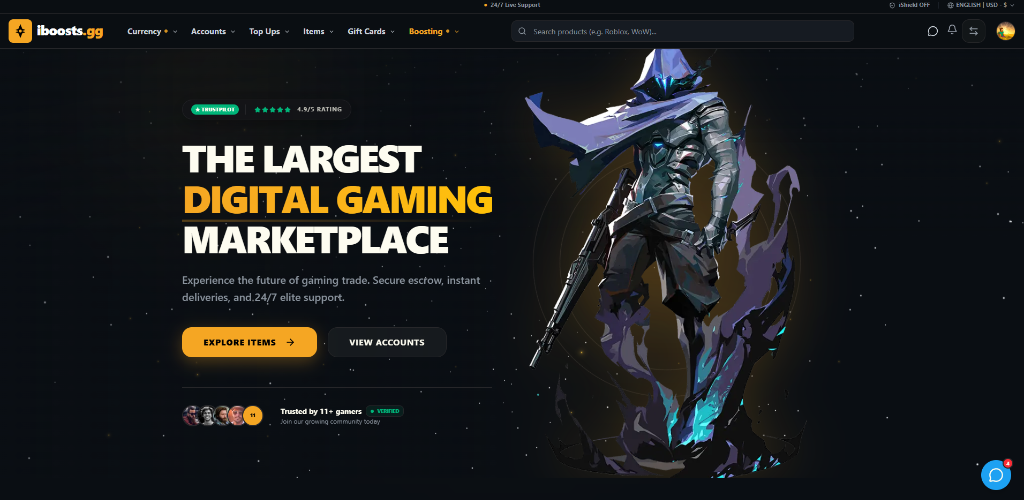 Digital gaming marketplace for in-game currency, accounts, items, boosting and gift cards with secure escrow
